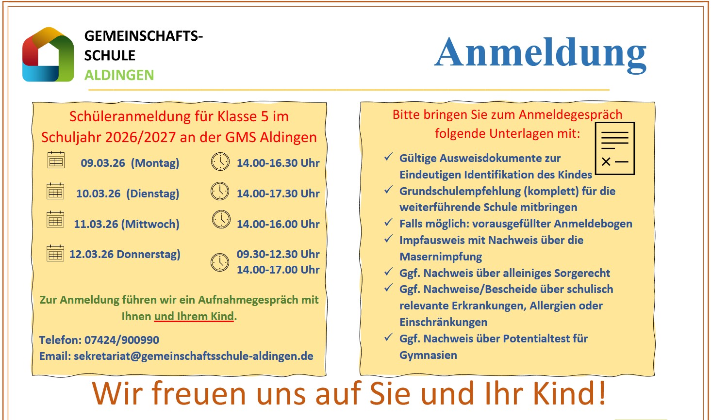Anmeldung Klasse 5